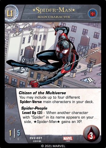 Example: If your main character has Spider-Verse you may include up to four other Spider-Verse main characters in your deck.