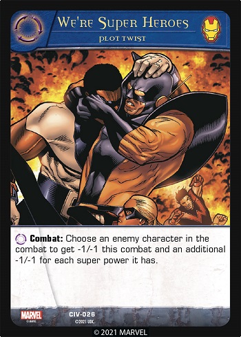 As you know by now, the story revolves around Super Heroes registering their names and powers with the government. Iron Man’s side agrees that this is necessary, but Cap’s team vehemently disagrees. So, let’s look at some cards that have to do with super powers!