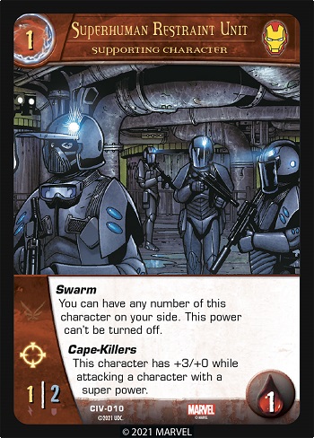 S.H.I.E.L.D. has created these specially trained and equipped squads to help the Pro-Registration cause. Note: They are happy to hunt down super heroes without capes as well.
