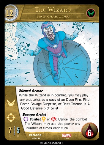 Very pensive! The Mad Thinker’s Computer Mind is so powerful he can very accurately predict what his enemies are going to do. When you make a Prediction, secretly write down the name of two characters: an attacker and a defender. The names don’t have to be characters in play at the time Mad Thinker uses the super power. When a character with the attacker’s name attacks a character on your side with the defender’s name (even in a team attack), cancel the combat. Then make another Prediction about the same turn, but this time you’ll have a lot more data! You can make a maximum of two Predictions from each use of the super power.