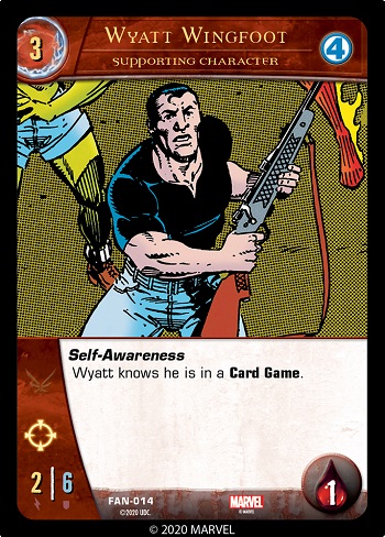 - At the end of your Draw Phase, Wyatt draws two cards into his part of your hand. (Keep these cards separate from the main part of your hand.)