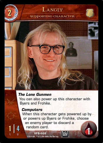 Note that when one of The Lone Gunmen powers up another one, it will trigger each of their other keyword powers. For example, if you discard Byers to power up Frohike (or if you discard Frohike to power up Byers), it will trigger Byers’ Science power and Frohike’s Photography power. You can resolve those powers in either order.