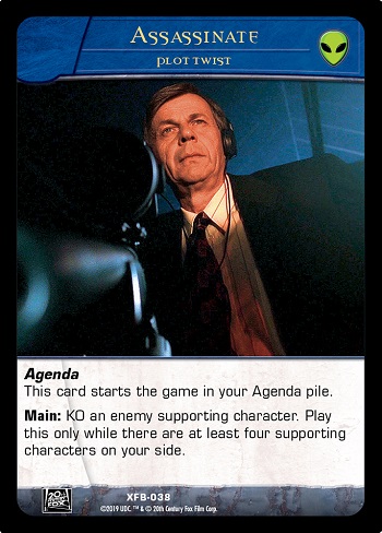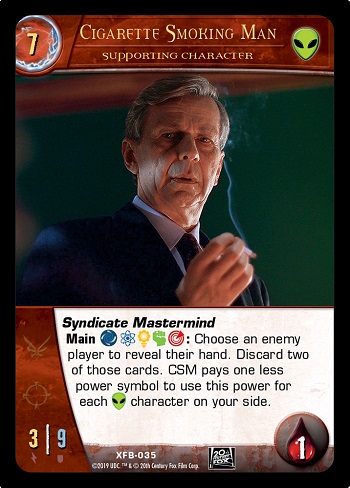 And if you happen to have both of Jeffrey’s “masters” on your side at the end of your turn (which would be real family affair), you’ll get both of his effects. Note: Jeffrey doesn’t care if you have the Main Character or Supporting Character versions of Mulder and/or CSM.