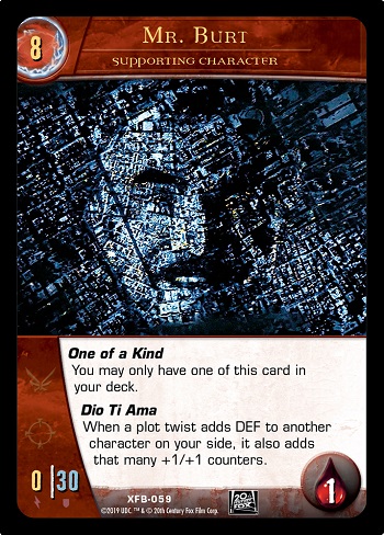 Dio Ti Ama gives a character +1/+1 counters whenever a Plot Twist gives it DEF. This is in addition to the DEF gain, not instead. So if a Plot Twist gives a character +0/+3, it will also gain three +1/+1 counters. Note: A Plot Twist that gives a character +1/+1 counters does not count as increasing its DEF for the purposes of Mr. Burt.