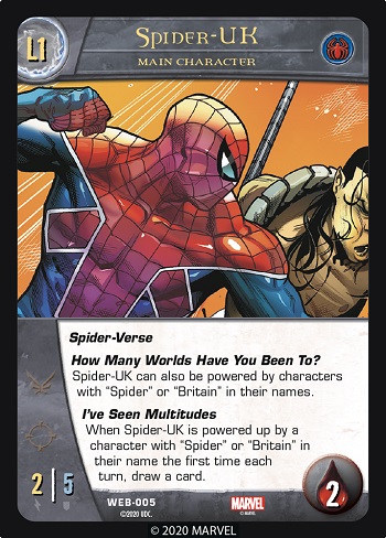 Note: Spider-UK can be powered up by any character with “Spider” in their name, including Main Characters that are in your hand.