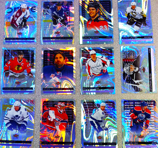 Fans have been loving 2014-15 NHL® Fleer Ultra, especially considering there are ZERO autograph redemption cards, all autograph content can be found LIVE in packs. Most people are not fans of redemption cards, but when they are good for a very special item, they certainly have their place. Such is the case with the 2014-15 NHL® Fleer Ultra Violet redemption cards. These redemption cards are good for one random parallel card from the 200-card base set with special rainbow foil numbered one-of-one!