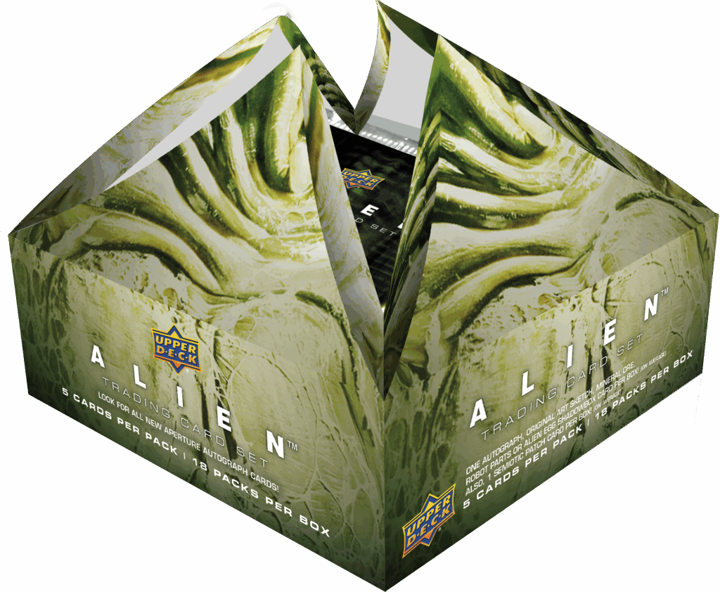 Alien Trading Card set is available in your local hobby store now! Each pack contains 5 cards, and each box contains 18 packs – with 12 boxes per case. You’ll be able to grab Alien on ePack early next year, with the chance to get the exclusive Chestburster Finger Puppet card by collecting all the autograph cards.
