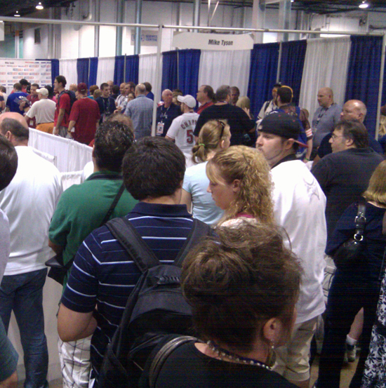 The next option is to find a sports collectibles shop or show in your area where there may be an autograph signing. Ask your Upper Deck Certified Diamond Dealer if they ever do in-store signings. Many do and those can be great experiences as they are not too crazy and you can usually get a photo opportunity or spend a little more time with the athlete. They are also a lot less expensive usually than purchasing the signature of an athlete at a show. Now the sports collectibles shows are a great way to get a variety of autographs from your favorite signers, but there are definitely drawbacks. You are looking at big lines, expensive ticket prices, terrible food and not a lot of interaction with the athlete because they have so many people to get through and usually they are being monitored by the show handlers. Sometimes the teams have autograph opportunities for fans as well, but they can be a total mob scene.