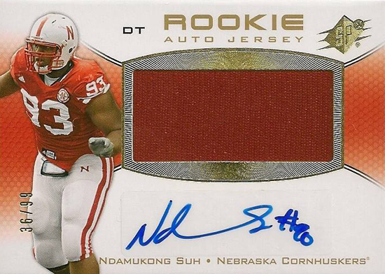 Then there are cards of players who perform well in the pros, but there is just a greater demand for their college collectibles because of the rabid fan bases for the program. Take a look at Ndamukong Suh for example. His Detroit Lions cards sell okay, but there seems to be a much greater demand for his Nebraska cards because of how passionate Cornhusker fans are. In more than a few instances, if a player comes from the right program, his college cards will have more value than his NFL cards.