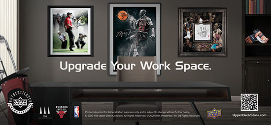 The first week of working from home I was on video conference calls and couldn’t help but notice all the blank walls in the background. Slowly, that’s changed as people are upgrading their work spaces to show off family photos, art and their favorite sports memorabilia. Upper Deck Authenticated has seen a surge in orders on UpperDeckStore.com for signed memorabilia as employees working from home are looking to dress up their backgrounds and home offices.