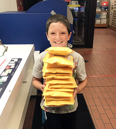 The stories Upper Deck has been most moved by are those collectors who show a giving heart, hoping that other youngsters can discover the fun of collecting cards. One young collector we’ve met just got involved in the hobby starting in Easter, 2020. Parker F. got started buying, selling and trading cards online with his dad, but he wanted to give back. He saw that some kids weren’t involved in the hobby and they always got excited when he shared cards with them. That gave him the idea to start putting care packages together for other deserving kids. In one weekend, Parker shipped out 64 self-made packs to kids using his own money for supplies and shipping.